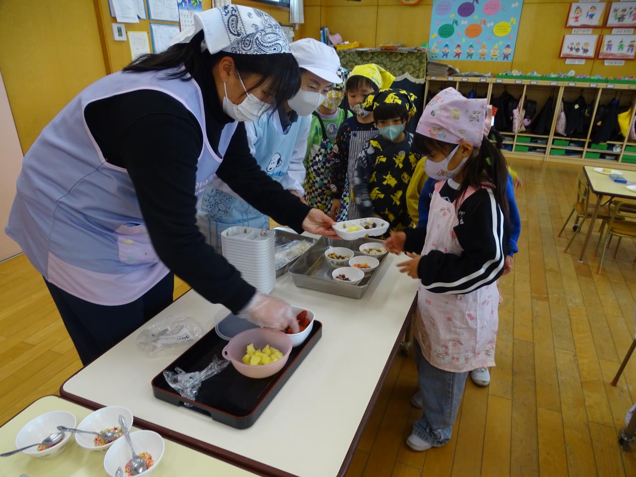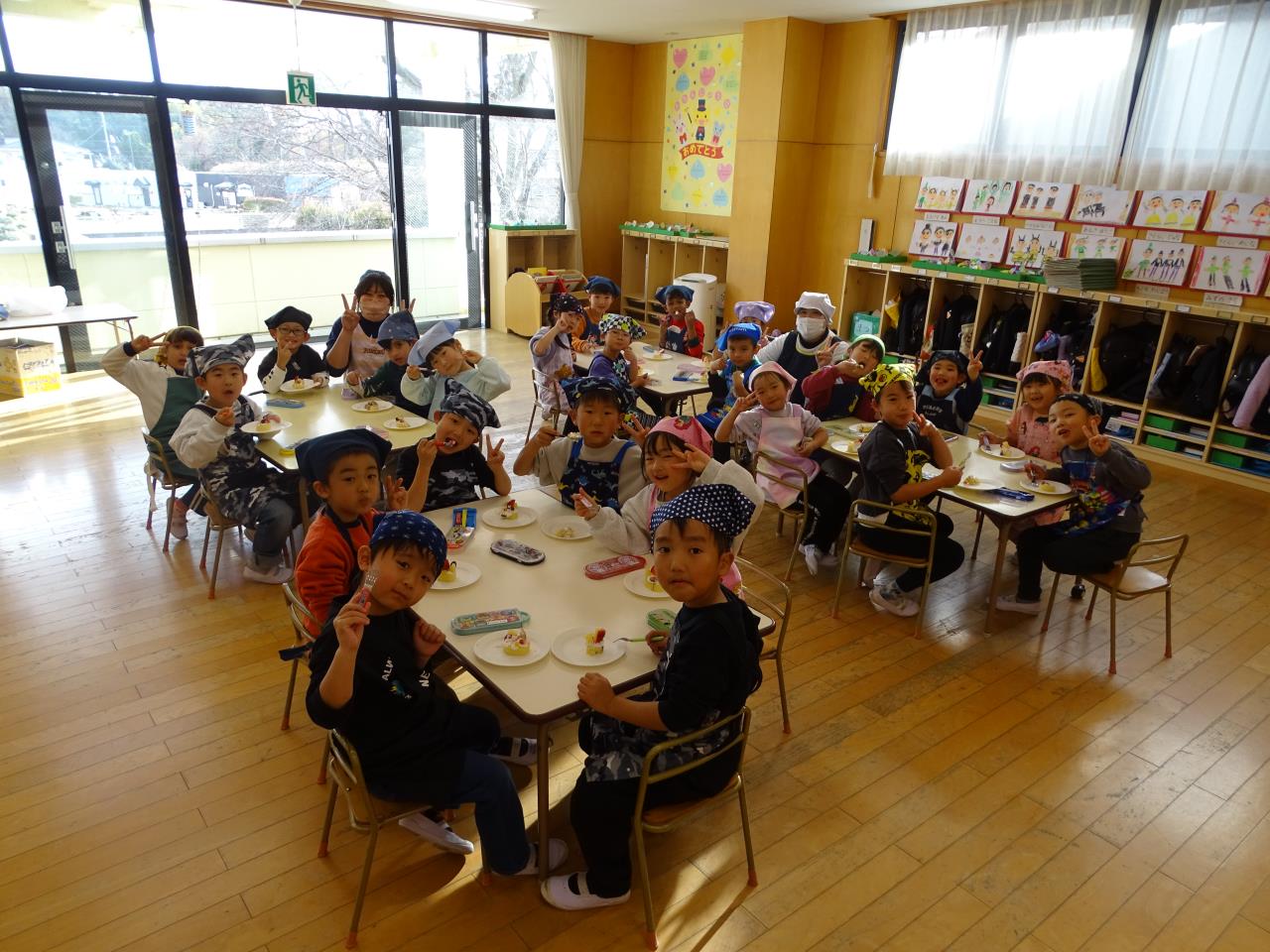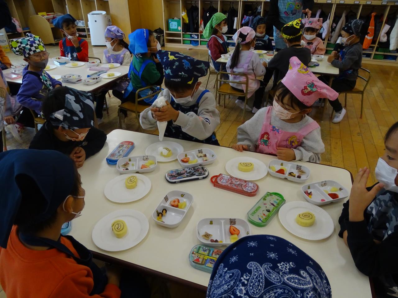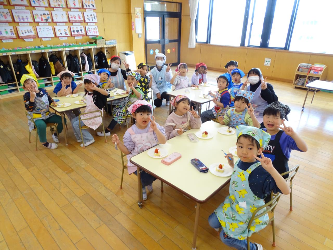 年長組のみんなで クッキング体験をしました♡ クリスマスケーキを手作りします♪ まずは、 好きなお菓子や フルーツ選びからスタート! つぎに、ロールケーキに ホイップクリームや チョコスプレーを 自分たちでトッピングすると・・・ オリジナルクリスマスケーキの できあがり~♪ 「ほらみて~」 「すてきでしょ♡」 初めての体験に 子どもたちは大喜び(≧▽≦) おいしそうなケーキに 「たべるのがもったいないよ~」 と言いながらも うれしそうに 食べる子どもたちは とても可愛かったです♡ 今日は すごく楽しかったですね(^^♪ |