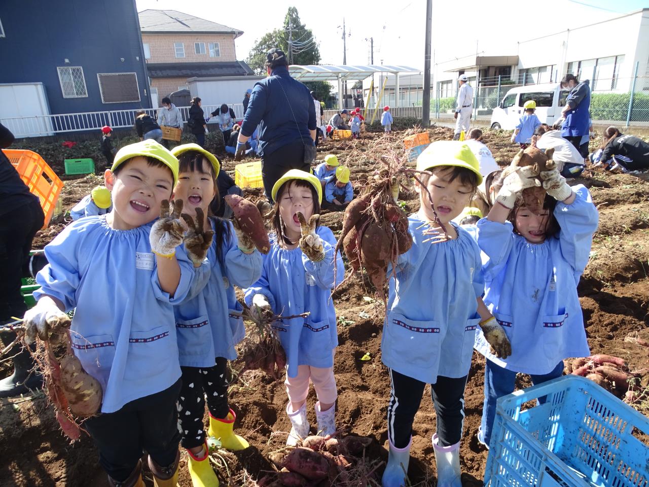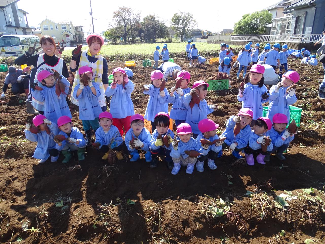 年少組(もも・はな)さんの おいもほりでした(*'▽') 「このおいも大きいよ!一緒に掘ろう!」 「小さくてかわいいおいもがあった~♪」 盛り上がった声が たくさん聞えてきました☆ おうちでも、楽しかったお話 聞いてみてくださいね♡  |