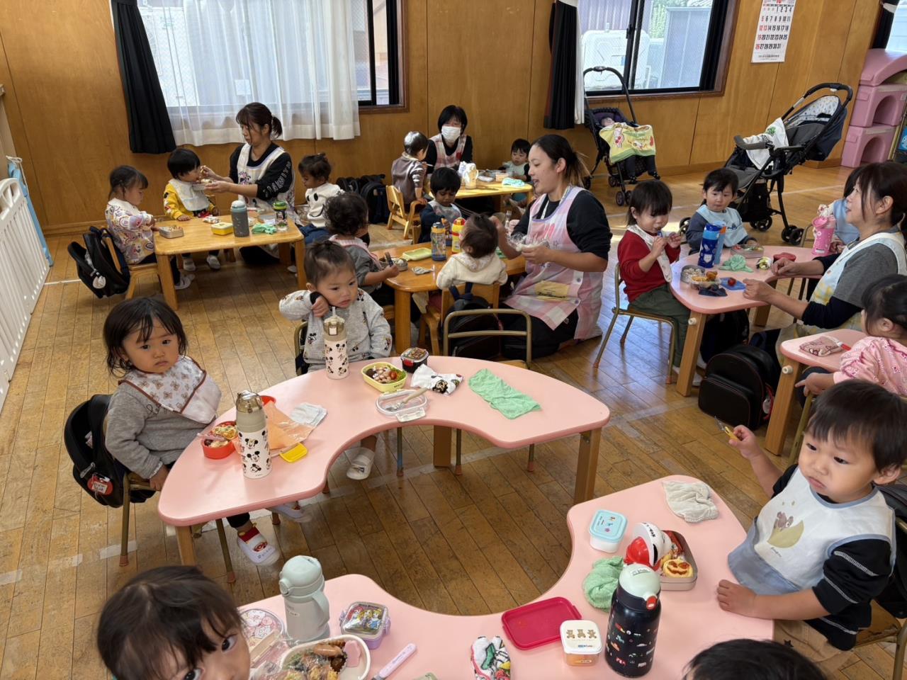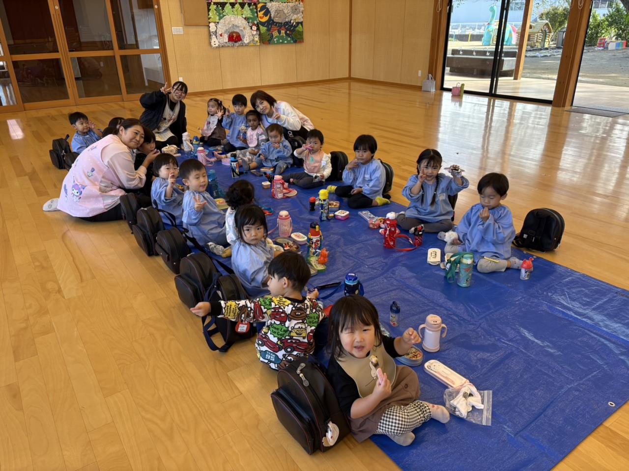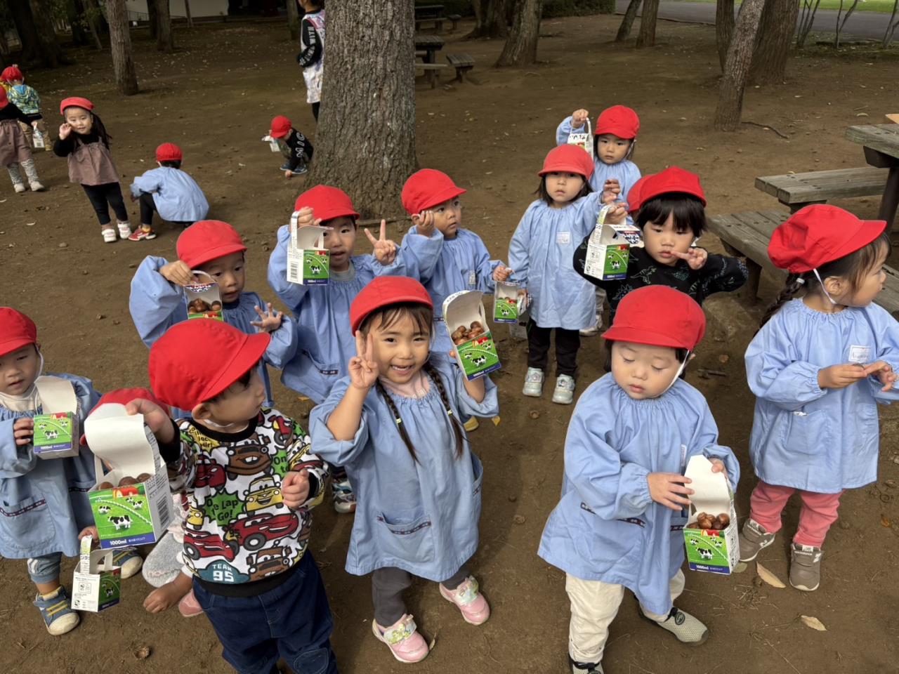 今日はみんなが心待ちに していた遠足で 八千代町民公園に 行ってきました♪! 公園をお散歩しながら 秋の歌をうたったり どんぐりを拾ったりと 秋の自然を満喫しました☆ お昼は楽しみにしていたお弁当♡ お友だちと会話を はずませながら モリモリ食べて 笑顔がいっぱいでした! 午後にはシャボン玉や ボールゲームをして 元気いっぱいに遊び とても楽しい時間を過ごす ことができました(*'▽')!!  |