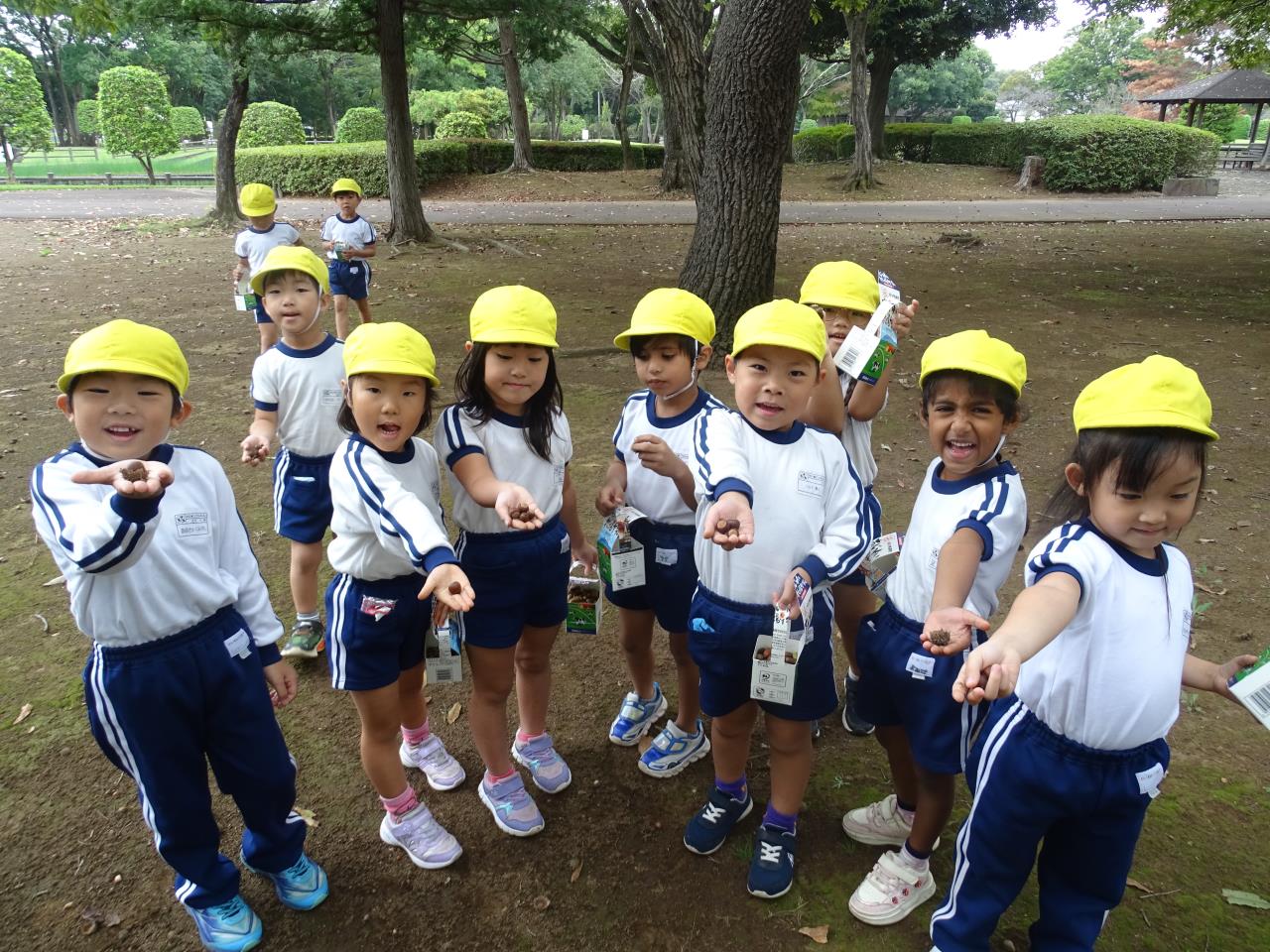 りす組ひよこ組さんも 遠足に行ってきました! こども園のバスに乗ることを とても楽しみにしていた子どもたち♪ ワクワクしながらバスに乗って 『しゅっぱ~つ‼』 八千代町民公園に到着すると 池の周りをおさんぽしたり みんなで写真をとりました♪ どんぐりを見つけると 「大きいのあったー!」と 大喜びで教えてくれました(^o^) 色々などんぐりを拾って バッグがいっぱいになりましたね♡ お家の人が作ってくれたお弁当を お腹いっぱい食べて とても楽しい遠足になりました!  |