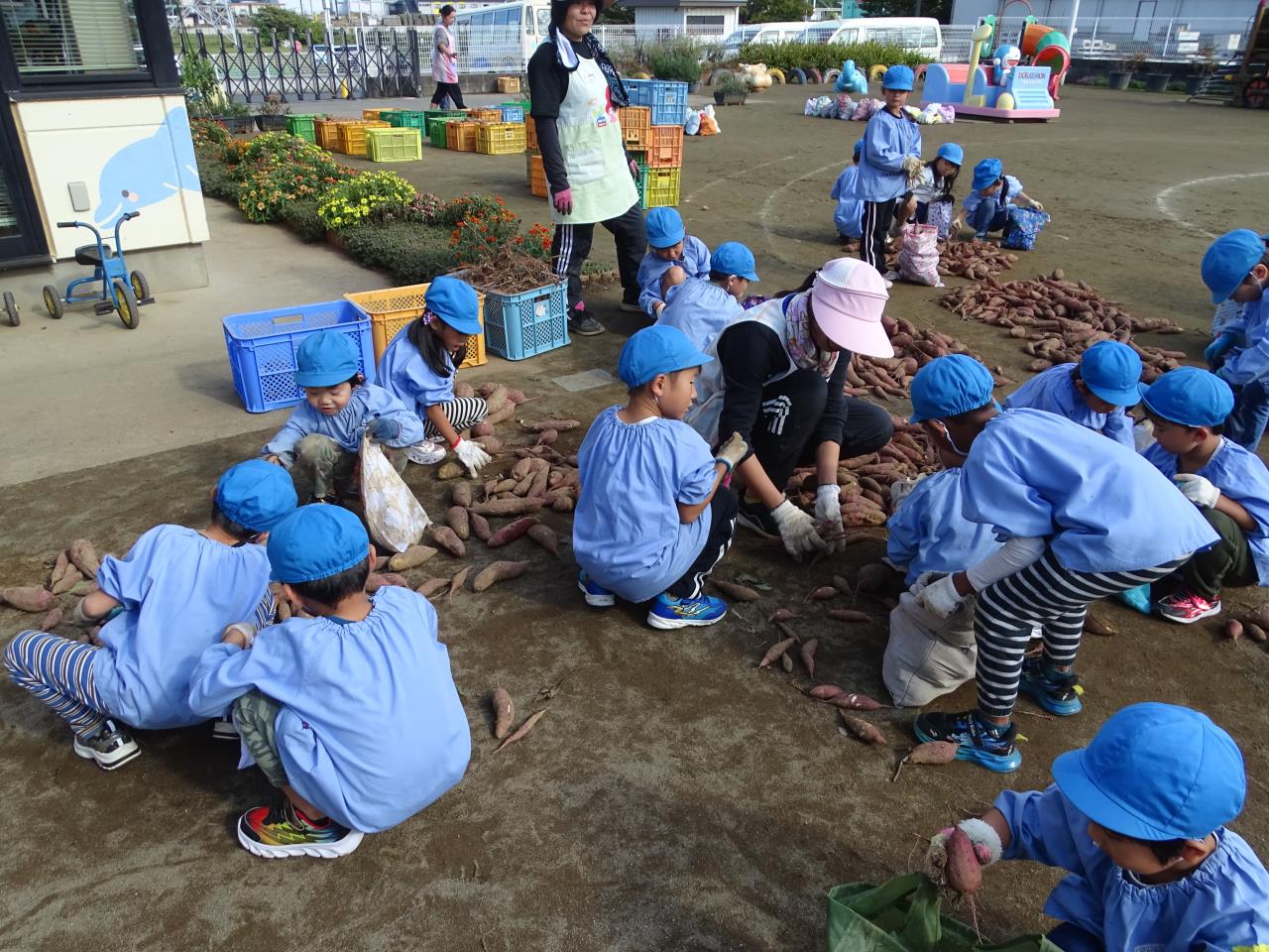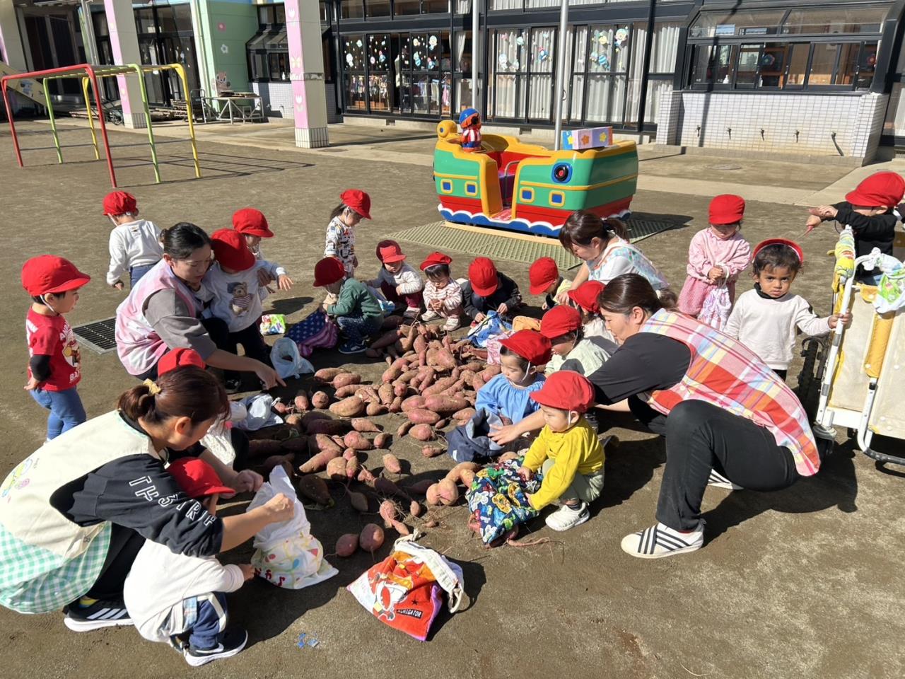 さつまのいもほりは 下記の日程に延期となります。 27日(月)年長組、もも・はな組 28日(火)年中組、りす組 いもほりは 園児と職員で行う予定です! ひよこ組はこども園で おいもに触れたいと思います♫ 長靴と手袋の用意を 忘れずにお願いします。 大きなおいもをいっぱい 掘りましょうね~♡ ※園児の登降園は通常通りです。 よろしくお願いします(*^^*)  |